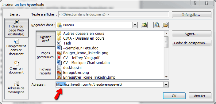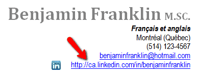 *Attention! N’oubliez d’ajouter « http:// » sans quoi le lien vers votre profil LinkedIn ne fonctionnera pas!