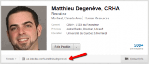 Vous apportez un bon point à propos du lien raccourci qui permet notamment de retirer l’amalgame de chiffres qui s’y trouvent. L’article suivant date un peu mais la marche suivre demeure semblable : http://moncherwatson.wordpress.com/2011/06/16/linkedin-obtenir-un-url-personnalise/