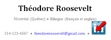Lorsque le lecteur de votre CV clique sur l’icône Linkedin, il clique en réalité sur le lien http caché sous l’icône.