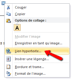 Ajoutez le « Lien hypertexte » à l’image à l’aide d’un clic droit sur celle-ci.